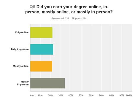 Did you earn your degree online, in person, mostly online, or mostly in person?