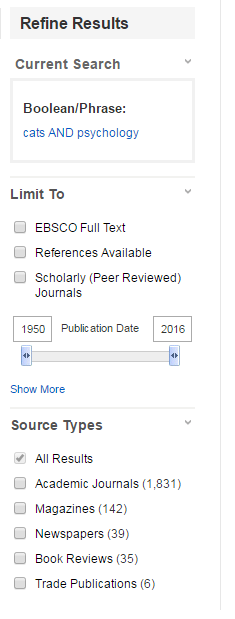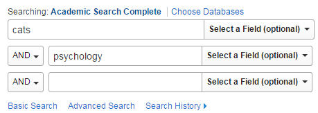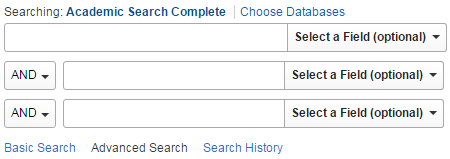 This is typical search screen in one of our many databases, Academic Search Complete. Not every database will use this exact same interface.