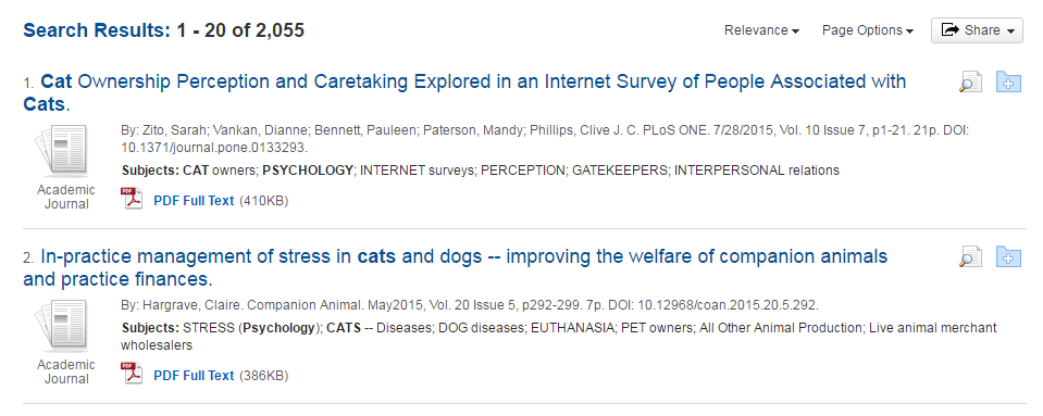 Clicking on an article will bring up a more detailed view of the article, including an abstract (a summary) and associated subject terms. Subject terms can be used for future searches.