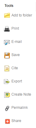 You can also add the article to a temporary folder, email a link, print the database record, and cite the article in a variety of formats using the tools on the right side of the screen.
